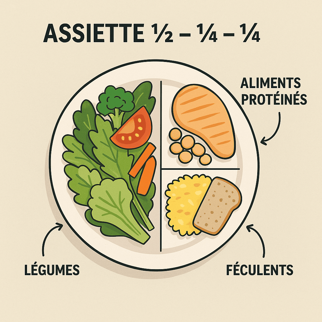 - Dîner 2–3 h avant d’aller au lit (structure ½‑¼‑¼).
