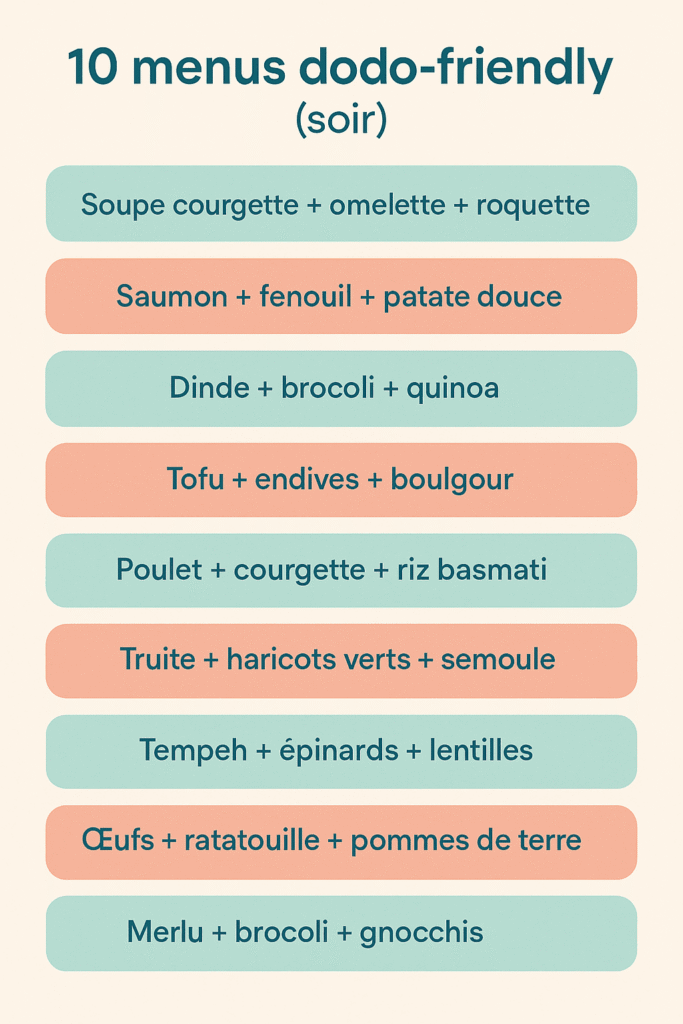 Menus du soir : 10 idées « dodo‑friendly »