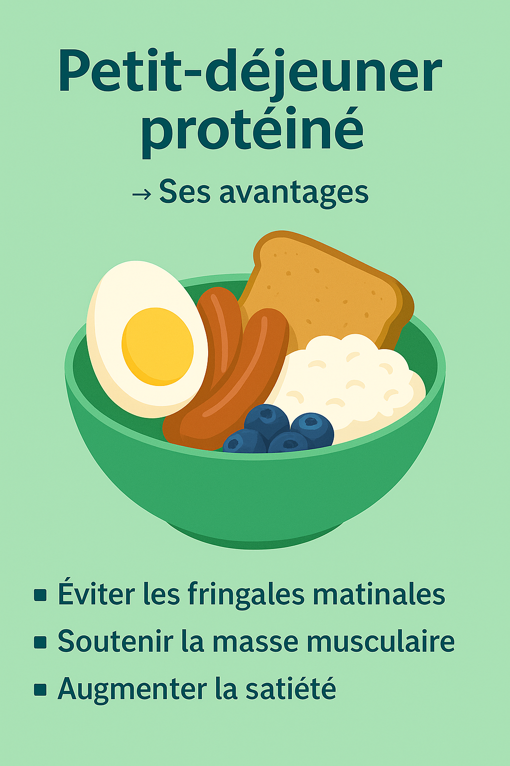 • Satiété prolongée : une bonne portion de protéines, associée à des fibres (fruits, céréales complètes, légumes), aide à tenir jusqu’au déjeuner.